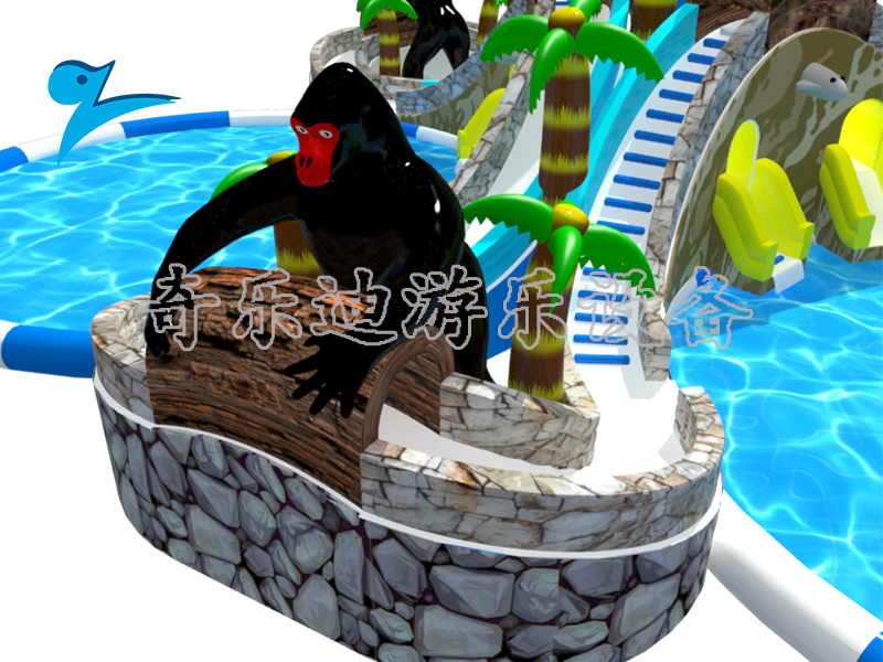 游乐设备丛林探险是一款移动水上乐园,从它的整个设计风格上来看,它选用丛林当中具有代表性的猩猩加以卡通式的表现,同时搭配椰子树、石头等装饰,让不少游客一眼看去就想要亲身体验一番。除此之外在它的设计结构上选用三个对称的滑梯组成,再加以流动的喷水,给人以视觉上的对称美感,趣味性与可玩性的结合让游客流连忘返,成为不少中小型投资者夏季的不错选择。