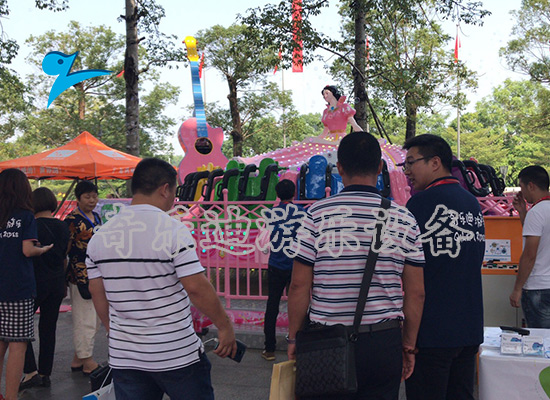 展会刚一开始,跳舞女郎的亮相就吸引了不少人员的关注,这款新型游乐设施的优势主要体现在以下几个方面。一是设计“新”,充满粉色梦幻的公主造型设计,让广大投资者眼前一亮,裙摆上的大面积灯光设计毋庸置疑能够吸引不少游客的前来。