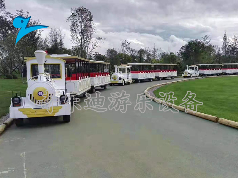 游乐设备42座无轨观光车是无轨火车类的一款游乐设施,整车分为一个车头,两节车厢,每一节车厢能乘坐20人,加上驾驶室乘坐两人,共能容纳42人乘坐,当然也可以根据客户的需求进行增减,整车动力为纯电动,由内置电瓶驱动,车厢可以根据客户的需求定制成全封闭的、半封闭的和全开放的,轮胎是完全以汽车轮胎标准配备。可沿着景区的水泥路、柏油路行驶,满电续航里程为100-150公里。适用于各种公园、大型游乐场、观光点。