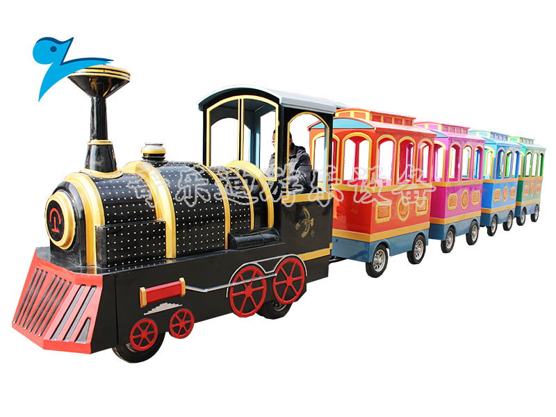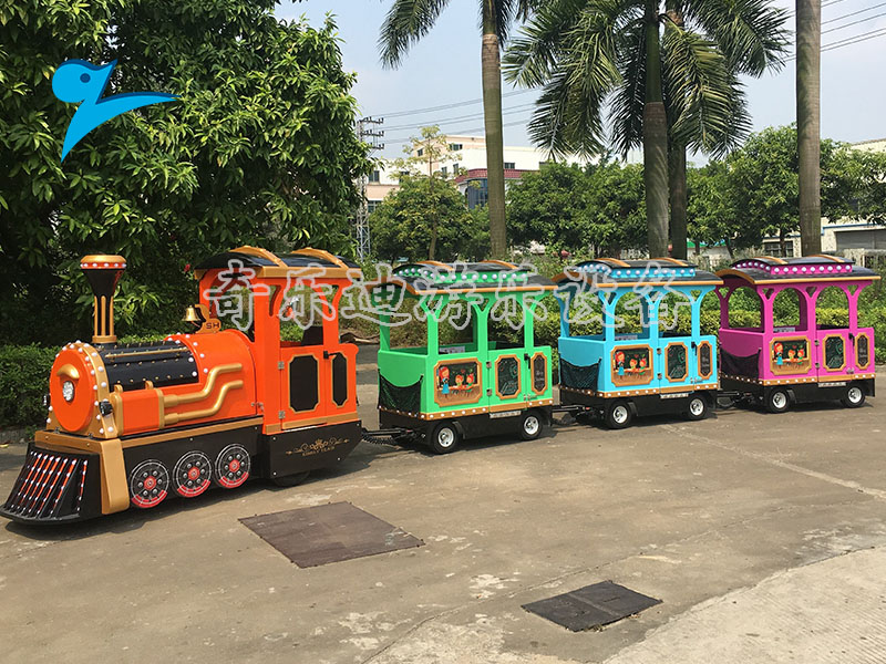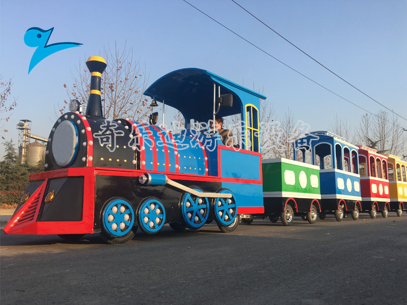 仿古无轨火车是以内置电瓶为驱动的,动力非常不错,满电可以行使80-120公里,续航能力也极强。整车以钢材为主体,各种造型的玻璃钢为辅,结构相当的坚固,外部色彩采用工艺喷漆,具有很好的环保效果和不易褪色等特点,多彩炫酷的灯光效果加上动听音乐,更能增加此款游乐设备的魅力。此款设备只要是坚硬的平整路面,就能行使,深受广大游客的喜爱。但是有一点,就是行使的道路的坡度不能太大,否则会影响其动力,甚至对整车造成影响,这点要注意。