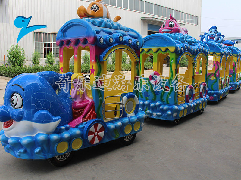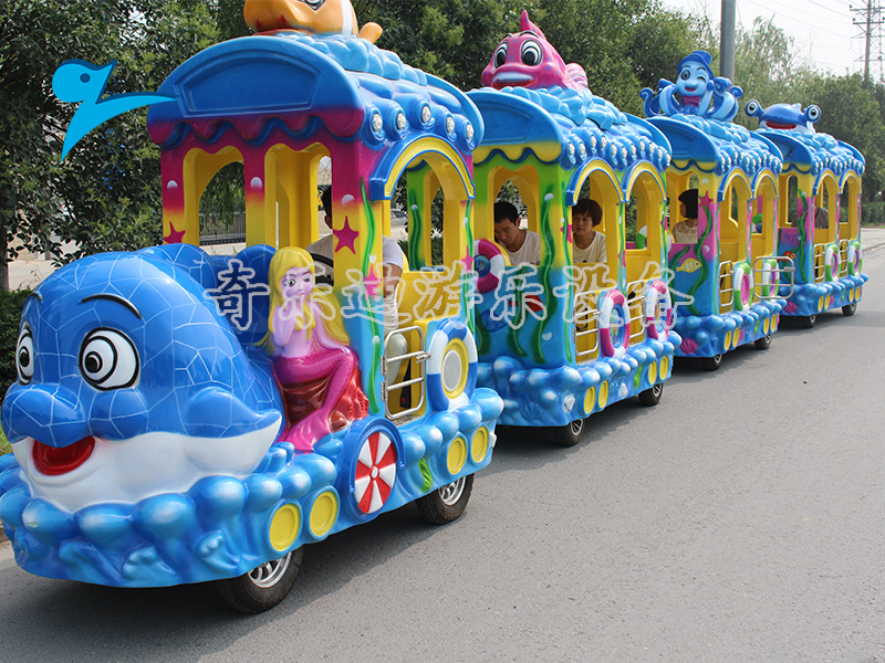 海洋无轨火车虽然是一款中小型游乐设备,但是整体采用钢材制作,外部加以玻璃钢装饰,采用汽车喷漆工艺进行涂色,整体色彩非常不错,细节更是栩栩如生,具有很好的牢固性和不易褪色等特性,外部还设有绚丽的灯光效果,可以按照客户的需求进行修改,再加上动听的音乐,能够让整体效果更佳梦幻、绚丽,很多小朋友都特别喜欢这款产品,往往都是流连忘返,所以上座率是非常高的,投资又小,很适合中小投资者。