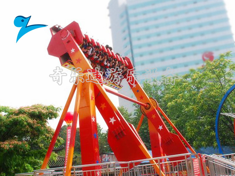 高空揽月是一款绕水平轴作圆周运动,座舱随惯性自转的大型游乐设备。它有液压和机械两种传动结构,同时可以容纳多人乘坐其中,随着机器的旋转,前后摇摆翻滚,失重感交替而至,游客乘坐在上面犹如在高空中遨游一般,新奇惊险刺激的体验赢得不少游客的喜爱。也正是如此,在各大公园、游乐场当中引进该款设备不仅能够吸引更多的客流,更是能够打造地理位置性坐标。