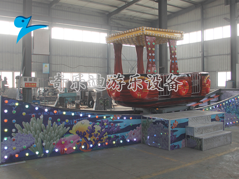 海洋飘船是一款公园当中常见的游乐设施,它的运动特点也是集圆周旋转和沿轨道滑行运动于一体,与其他类型的飞车大致相同。从它的整个设计上来看,创意性的小船座舱与弯弯月牙形状的轨道,带给游客在大海当中随波漂浮的真实感受。在设备启动之后,座舱沿着轨道做上下的起伏伴随着360度的旋转,刺激而又冒险的体验让不少游客乘坐之后依然意犹未尽。