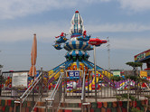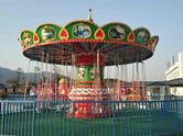 旋转飞椅游乐设备整体色彩鲜艳亮丽,同时拥有占地面积小、运行安全、耐腐蚀等特点,在市场上深受欢迎