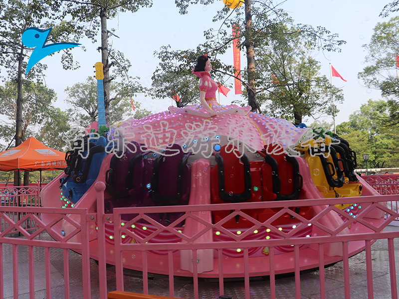 跳舞女郎是一款陀螺类游乐设备,顾名思义它的整个外形看起来就像一名正在跳舞的女郎。在设备启动的时候,它不停的扭动旋转,伴随着炫丽的灯光和动感的音乐,游客们乘坐其中就像在舞池当中跳舞一样。别具一格的外形与刺激惊险的玩法,让这款设备一经推出就成为各大公园、游乐场当中的高人气项目。