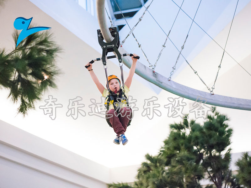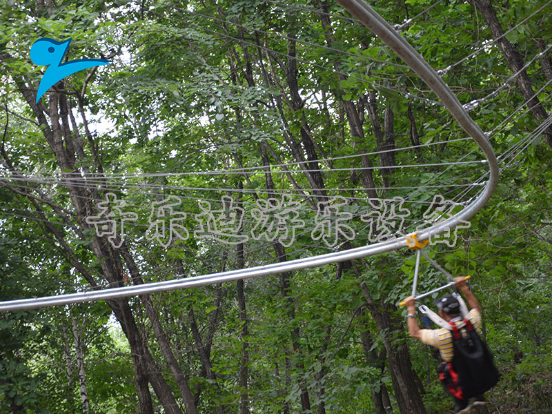 空轨滑车游乐设施是一项具有综合挑战性、惊险性和娱乐性为一体的现代化游乐项目。它是利用自重动力牵引技术,以一些倾角布置的钢材为轨道,以游客自身重量为动力,借助轨道装置的高度差,从而实现在滑索上快速滑动的游乐项目。从整个游乐项目来看,这款汇集了高空、力量、速度、毅力等户外探险元素的设计,让参与者在惊险刺激中完成属于勇敢者的挑战。