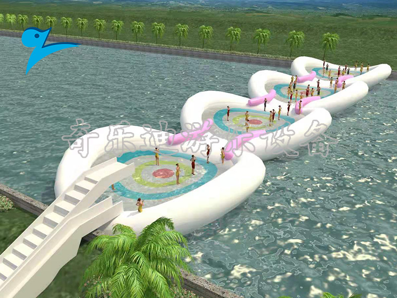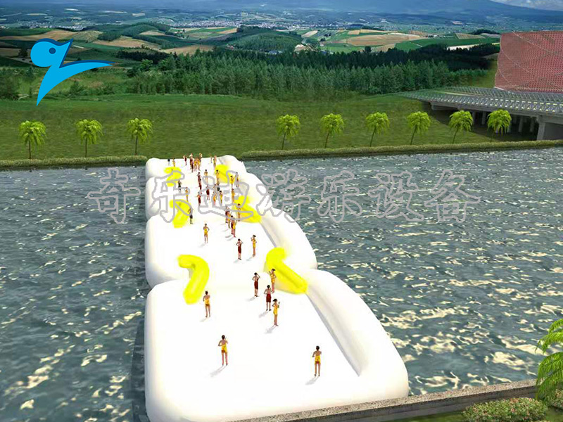充气桥的安全问题更是不用担心,它在桥体两侧采用斜拉钢索与主固定钢丝连接,再加上独立的供气系统和自动减压装置,都对产品起到了很好的浮力支撑作用。当然了你更不用害怕掉到下面被水淹到,因为它是做的足够大,并且两边高中间低的防护设计更是确保了每一位游客的安全。这款把幸福的体验注入到生活中