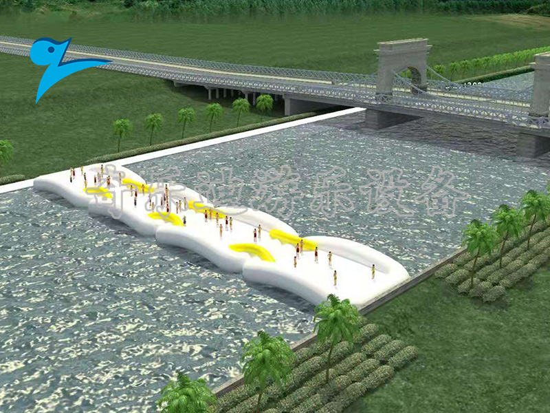 新型游乐设备充气桥又名蹦床桥,从它的命名上就能看出这是一个配有巨型蹦床的无动力产品。它的整体采用圆拱形充气浮胎结构作为支撑,每个单体通过高结构件连接。脱离了地心引力的玩法让游客们尽情享受在河流上跳跃的欢乐,更为特别的一点是,充气桥不仅自身是一个景点,更是可以与旅游景区相结合吸引更多的人气提升景区的盈利能力。