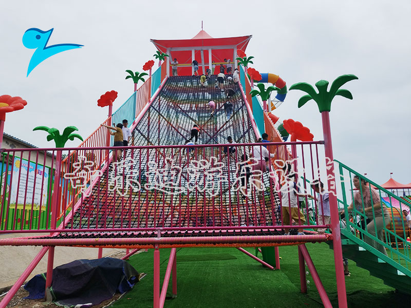 游乐设备又称绳网攀岩,是无动力乐园当中不可或缺的一部分。上面的绳网是由纯手工编织而成,采用镀锌钢管焊接,该项目安全系数高,趣味性强,深受游客们的喜爱,现如今在游乐园、景区、度假村等场所的应用越来越广泛。