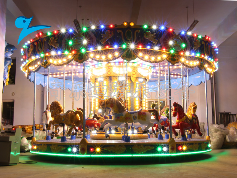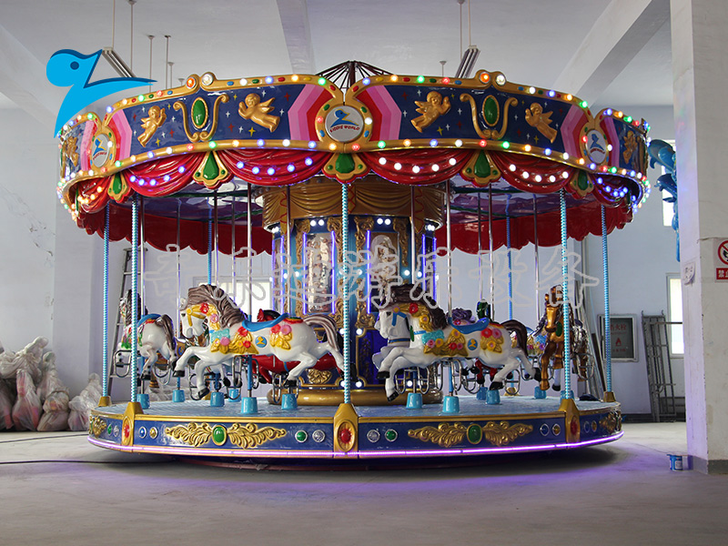 游乐设备欧式转马是一款游乐场高人气项目,充满欧式风格的华丽顶棚装饰与栩栩如生的马匹造型,带给游客视觉上的享受。不仅如此绚丽的灯光与轻快音乐的结合,更大程度上调动整个游玩的氛围来。从投资者的角度来说,欧式豪华转马一来能够招徕人气,单次的乘坐人数也较多,休闲放松的游玩体验适合大多数人的乘坐,这样的一款游乐项目怎能不受欢迎呢?