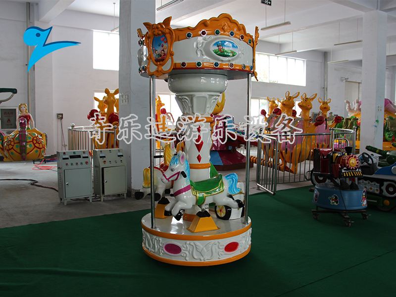 3座豪华转马的运行也是围绕中心轴做定向旋转,它的圆盘上装有三个不同外观的马匹以供乘坐,在中间的额立柱上点缀有欧式风格设计的图案装饰。伴随着设备的运转座舱上下起伏,灯光的闪烁更是为孩子编织了一个童话的梦境。从投资者的角度考虑,整个机器采用微电脑控制,操作更加方便安全可靠,它的整体占地面积较小,适合摆放在公园、社区、广场等客流量大的场所。