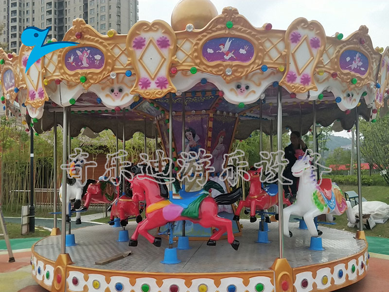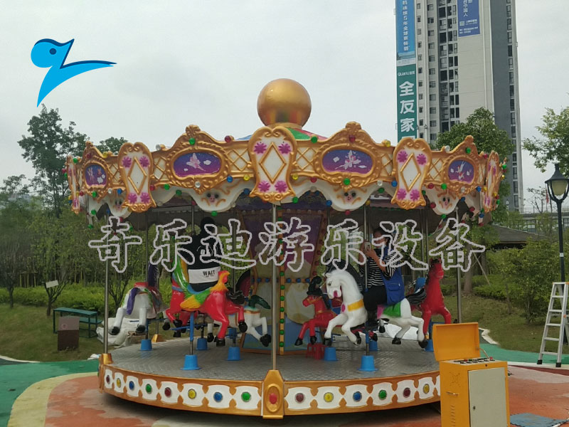 游乐设备12座豪华转马是一款垂直轴类单转体起伏型游乐项目,它的设计理念来源于跑马厅的娱乐活动,生动逼真的造型设计与欢乐幸福的乘坐体验,适合不少的中小型投资者。单从一次乘坐数量上来看,只能供12个游客乘坐,但是它欧式华丽的彩色顶棚、绚丽夺目的装饰彩灯与温馨欢快的音乐结合,同样赋予了它备受认可的商业价值来,传递欢乐与商业价值的双重结合让这款设备更得人心。