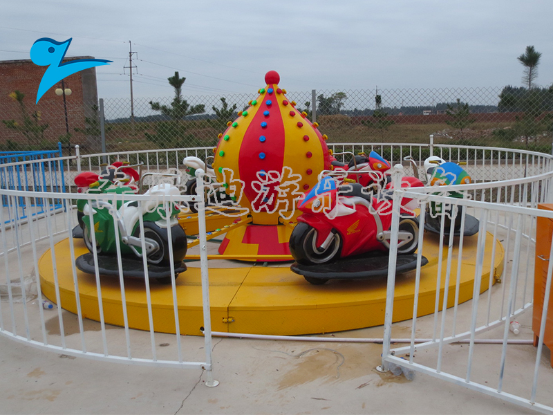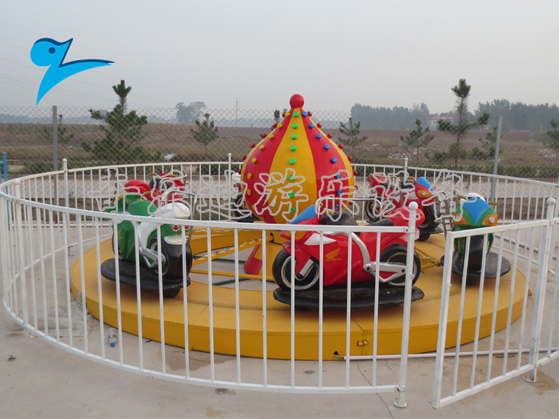 游乐设备摩托竞赛与飞车竞赛类似,是一款中小型转马类项目。它一改人们印象中骏马座舱造型,特别选用竞赛类摩托车更是激发了孩子们勇敢拼搏追逐的精神。从它的座舱设计上来说我们可以根据客户的需求进行定制,其一般规格为6车或者8车,每个摩托车座舱上能够乘坐一人。从投资者的角度来说,该款设备一般经营在公园、广场、庙会等人流量较大的场所。