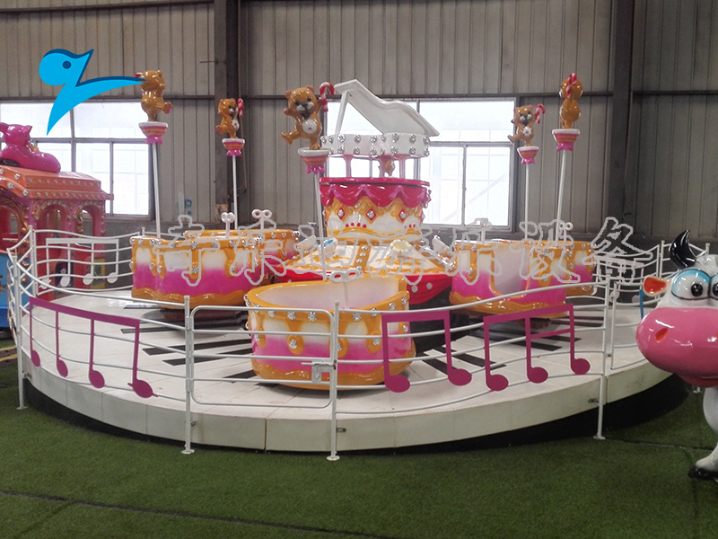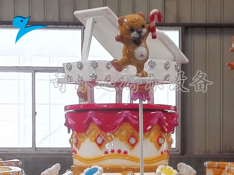 甜蜜八音盒是一款转马类主题式游乐设施,它的整个设计表现了一个欢乐的场面。黑白键的钢琴底盘、心形八音盒座舱、欢舞的洋娃娃和小熊、音乐旋律谱写的围栏,充满新意的设计每一个细节都洋溢着甜蜜与幸福。这款设备参考小朋友们童年生活中熟悉的物品为原型,生动逼真的还原了卡通式的造型,切实贴合儿童的心理诉求的设计自然吸引了不少游客的目光。