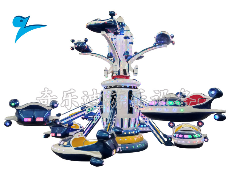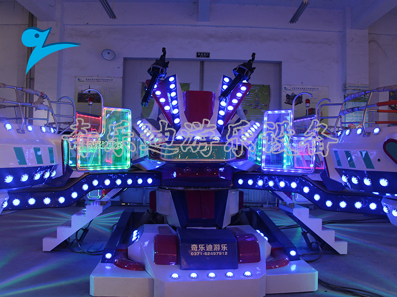 游乐设备,它参考未来时空穿梭在星际当中的宇宙战舰元素,配以匠心打造的外形与酷炫的灯光效果,使乘坐其中的游客畅享旋转、升降、射击等多重体验。强烈的代入感让游客仿佛真的到达了未来的世界,在浩瀚的星际当中左避右闪躲过陨石带,勇往直前追击星际海盗取得胜利的战役。与众不同的主题风格与玩法设计一经推出,就在市场上引起强烈的反响。
