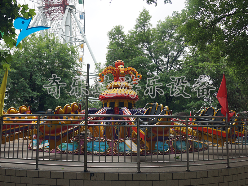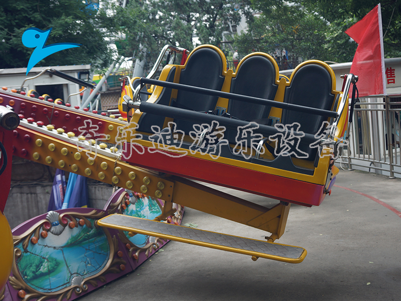游乐设施弹跳机是一款中大型游乐项目了,它的设计亮点在于它华丽的灯光效果上了,在整个设备的中心和座舱四周都有一排排的彩灯镶嵌装饰,仅是从视觉效果上就带给人们震撼。与它炫丽的外形成正比的便是它有趣的玩法了,在设备启动之后整个过程都非常惊险刺激,挑战游客的心理承受能力,在旋转与升降起伏当中游客大声尖叫,释放在现实生活当中遇到的压力与烦恼,在急速的心脏跳动当中感受内心的安静。