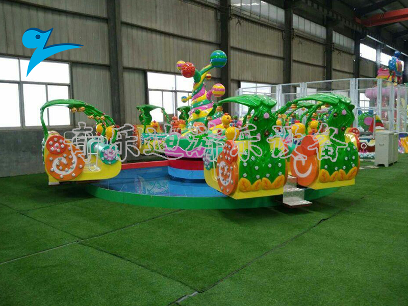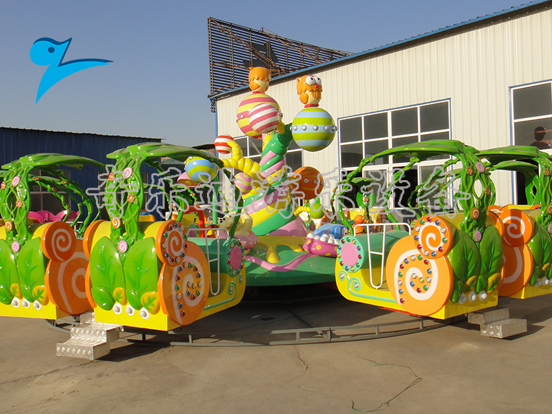 游乐设备,它的整个造型设计非常特别,在中间的部位是一棵充满卡通设计的糖果树,在四处延伸的树枝上站立着可爱的猫头鹰,细节化的点缀更是增添了不少的童趣。与传统意义上的骏马座舱不同,它的座舱四周被藤蔓围绕,彩色棒棒糖图案的不规则分布让小朋友们一眼就爱上。也正是如此该款设备适合摆放在公园、广场、社区等小朋友较多的场所。