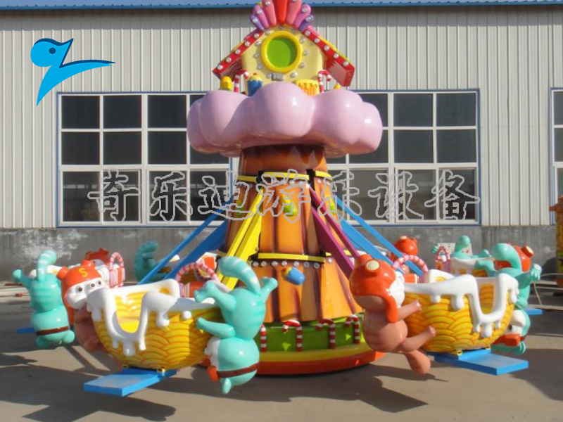 游乐设施,从它的整个设计风格上来看充满了童趣,富有生机活力的小飞鼠、漂亮的小房子在加上象征着丰收喜悦的玉米贴图装饰,生动逼真的卡通造型与鲜艳的颜色搭配,更加贴合孩子们的审美心理。不仅如此在这款设备的中心柱和座舱四周,更是添加了钻石般的彩灯装饰,在夜晚的时候,迷人的灯光效果吸引了不少游客的驻足观看。
